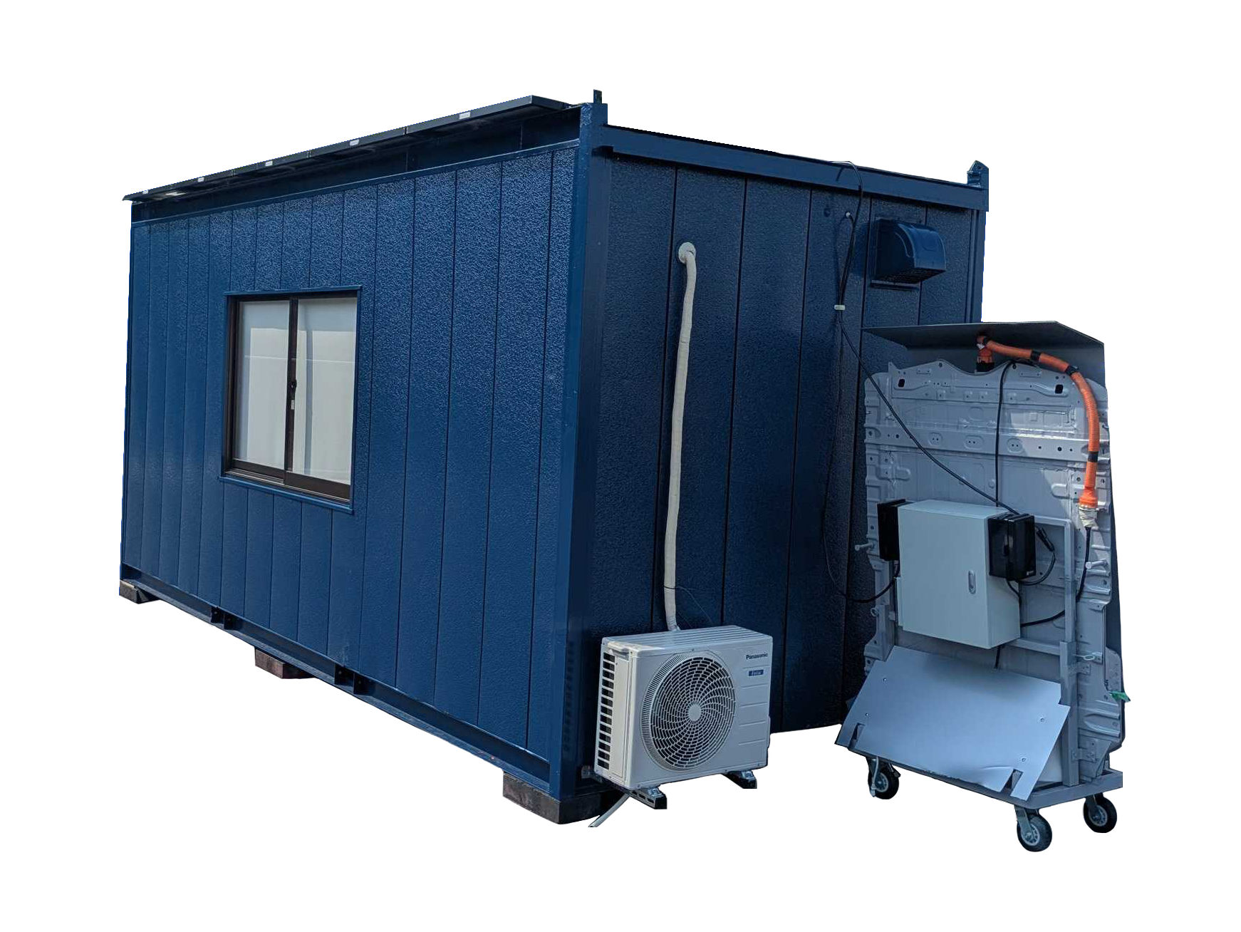 使い終わったEV自動車のリチウムイオンバッテリーを搭載し、