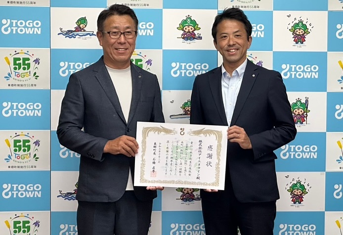 愛知県愛知郡東郷町役場にて石橋町長より「企業版ふるさと納税」に対するお礼の場をいただきました🙇
